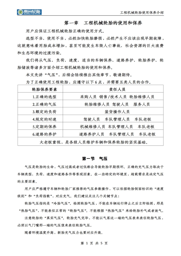 第一章 工程機(jī)械輪胎的使用和保養(yǎng)